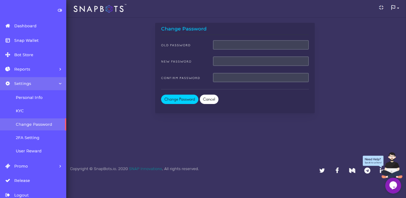 The password has thus been changed, and you can re-log in to SnapBots again.